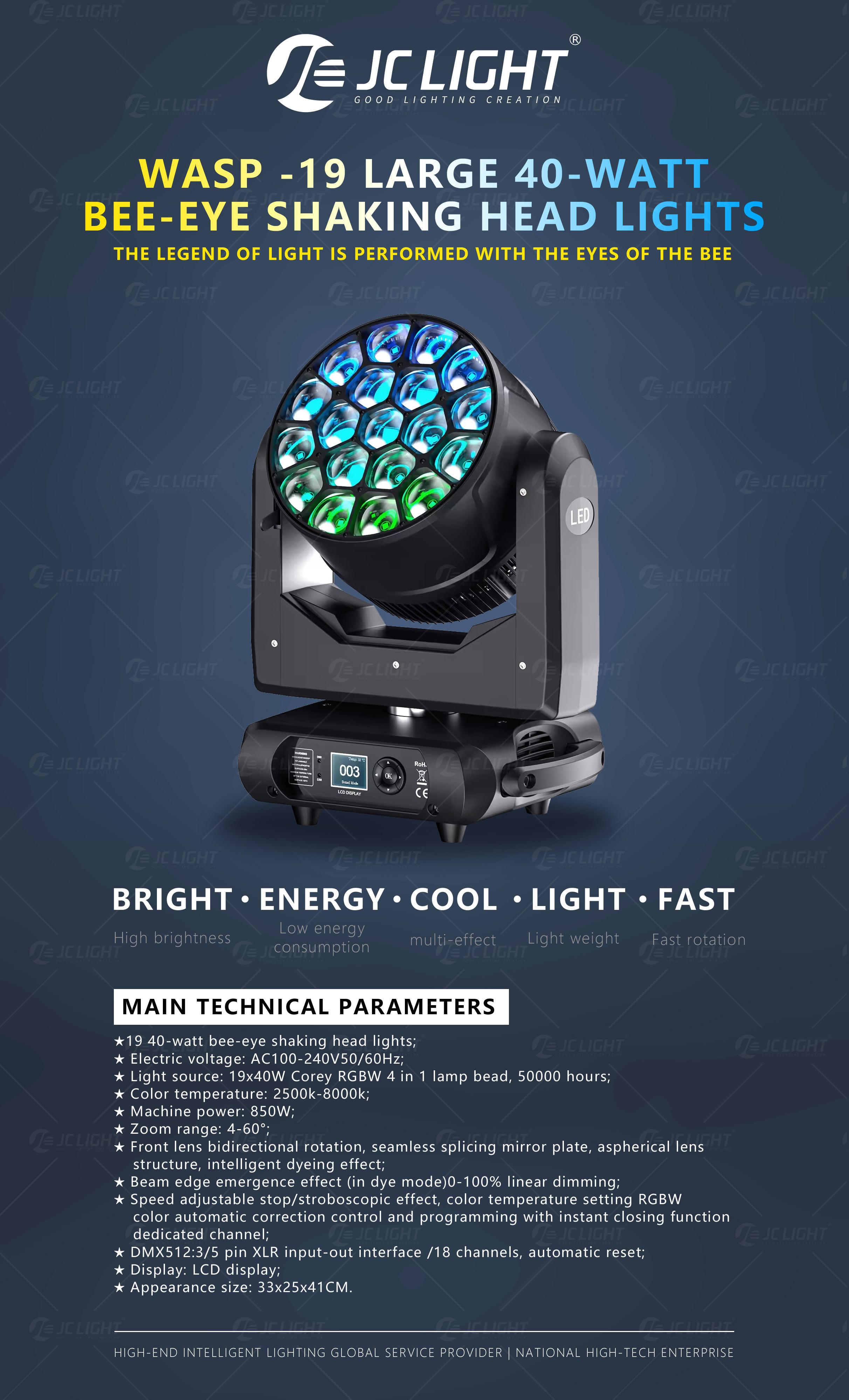 As the most professional stage lighting manufacturer in the industry, JCLight has been specializing in the production of stage lighting for more than 15 years.